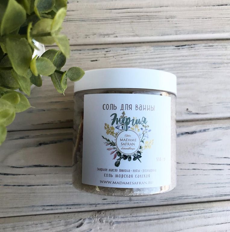 Сакская соль для ванны с композицией эфирных масел лимона, мяты, розмарина. Данная композиция обладает освежающим, бодрящим эффектом, улучшая эмоциональное и физичнское состояние.