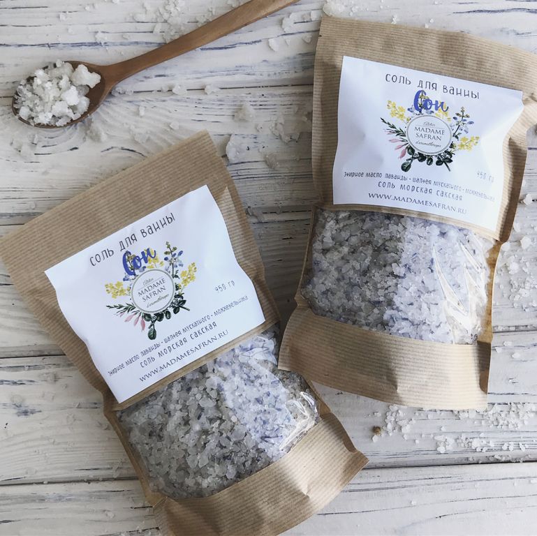 Сакская соль для ванны с композицией эфирных масел лаванды, шалфея мускатного, можжевельника. Данная композиция оказывает успокаивающее и физически раслабляющее действие, помогает снять напряжение в мышцах.